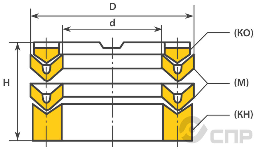 Для обеспечения более надежного уплотнения гидравлических устройств применяются пакеты полиуретановых манжет для гидравлики. В комплектацию подобного уплотнения входит: